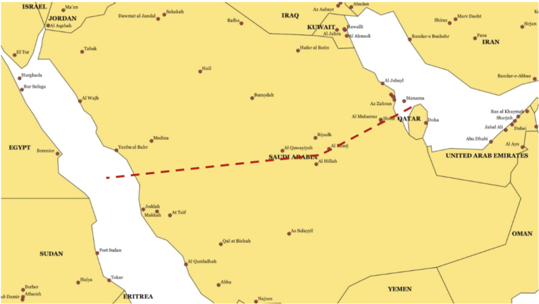 East-West Pipeline (Petroline), Arabia Saudita. La più rilevante infrastruttura alternativa è l’East-West Pipeline, nota anche come Petroline, gestita dall’Arabia Saudita. Questo oleodotto si estende per 1.200 chilometri attraverso la Penisola Arabica, collegando i pozzi petroliferi di Abqaiq — nella Provincia Orientale — con il porto di Yanbu sul Mar Rosso (Fig. 3). Fu costruita negli anni Ottanta, quando il timore che il conflitto tra Iran e Iraq potesse interrompere i traffici attraverso lo stretto di Hormuz spinse a cercare rotte alternative.